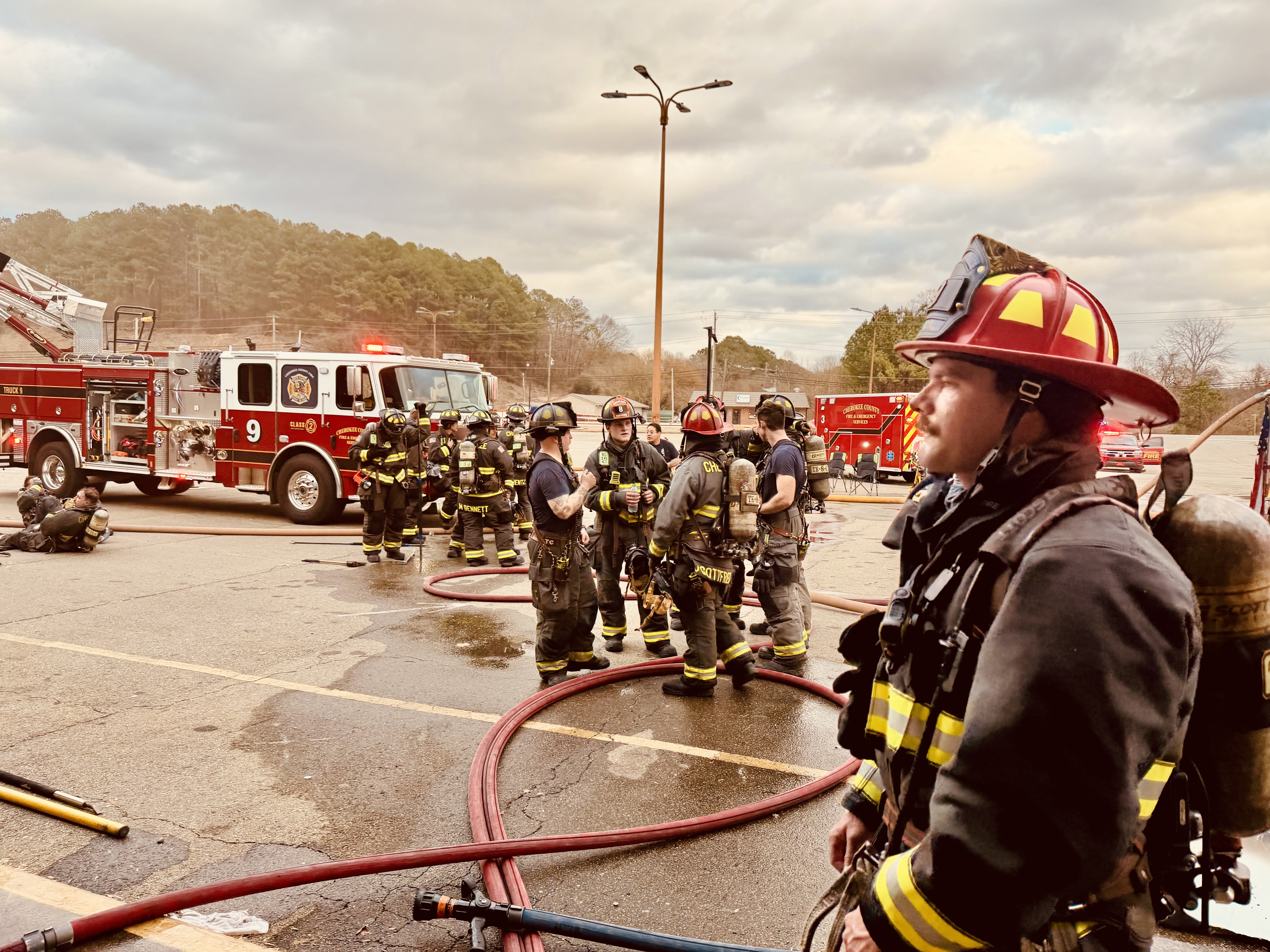 Firefighters arrived on scene to find smoke coming from the roof throughout the building and active fire inside the structure. Crews quickly deployed hose lines to begin extinguishment while additional firefighters searched the building for occupants.